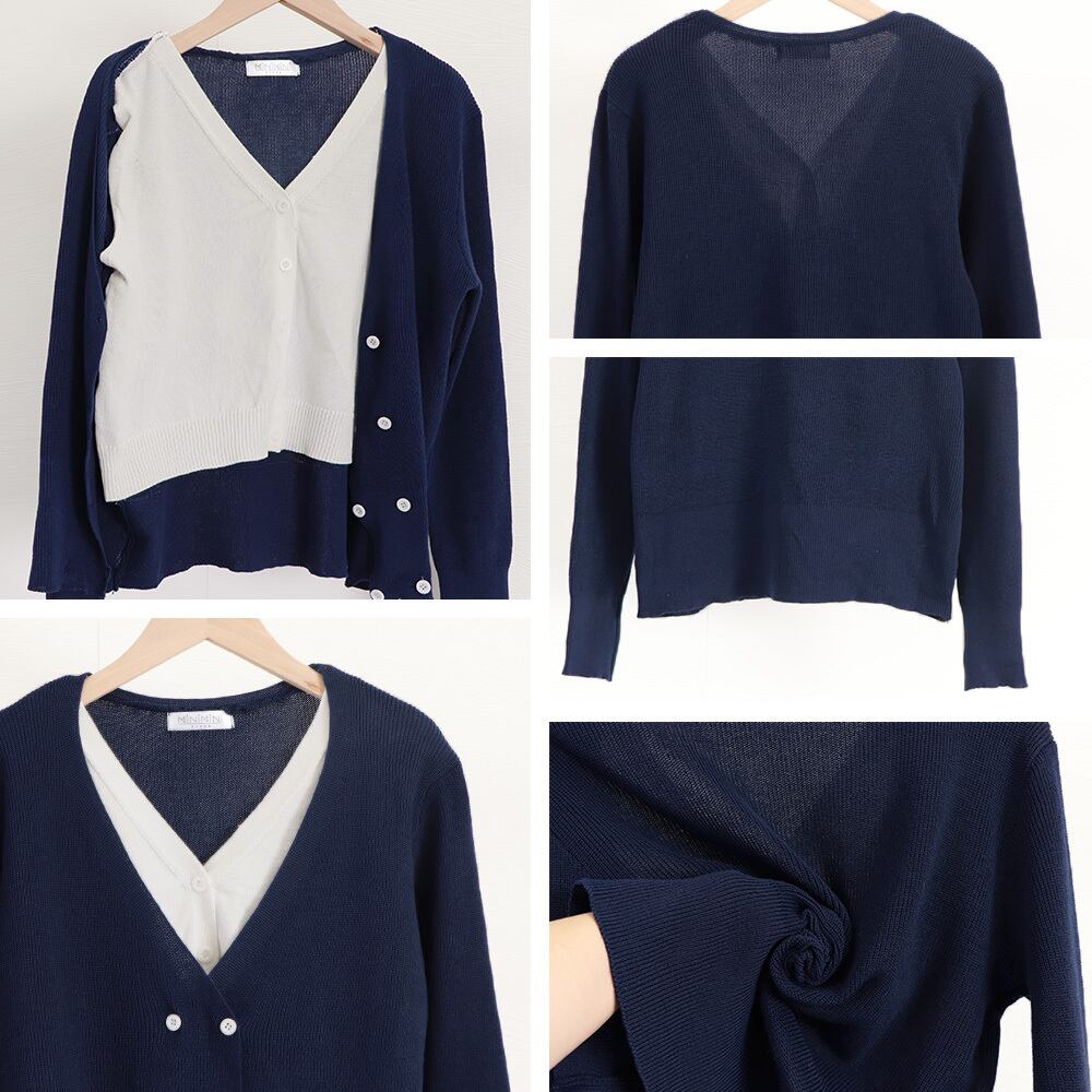 このレイヤード風ニットトップスは、春のコーディネートにぴったりなアイテムで、さまざまなボトムスと合わせてスタイリッシュな装いを楽しむことができます!ぜひご覧ください!